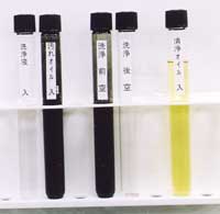 オイルと大変優れた相溶性があり、麻酔性があります。人間では発ガンの発症例は報告ありませんが、ラットに大量に吸引させると発がん性ありとされています。そのために充分注意する必要があります。検索ワード(メチクロ発がん性)で沢山の報告があります。 放出規制値は、大気50mg/m3 排水では0.2mg/Lと規制されています。 再生は自分でも蒸留することもできます。新機は蒸留器を付備いたしました。100%回収可能です。新機では全ての溶剤メチクロを真空ポンプ〜冷却コンデンサーで回収できる構造です。 ドライ式ダイヤフラム真空ポンプで吸引液化回収されます。特別産業廃棄物ですので、これも溜めておいて各都道府県公認の専門業者に委託します。または自分で蒸留再生します。